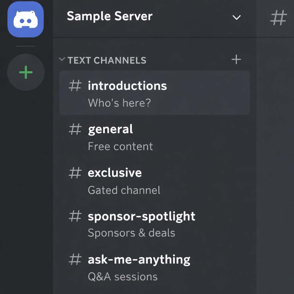 The setup: Connect Patreon to Discord using the official integration. Members at specific tiers automatically gain channel access. A $5/month supporter gets access to early episode releases and a members-only Q&A. A $20/month supporter gets direct Slack-style messaging with you for monthly strategy calls.